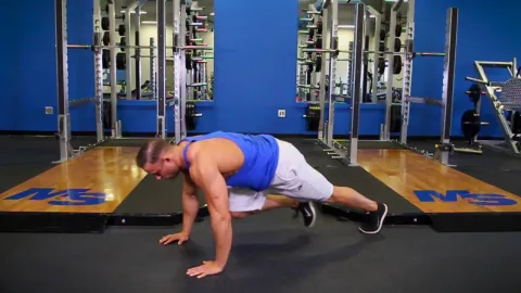 The Decline Push Up (Feet on Bench) is a compound exercise that targets the Chest, Abs, Shoulders, Triceps. It focuses on proper form and strength development using a barbell.