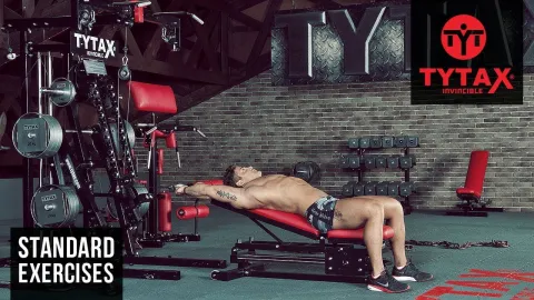 - Inhala y baja la barra con control hasta tocar ligeramente la tabla.