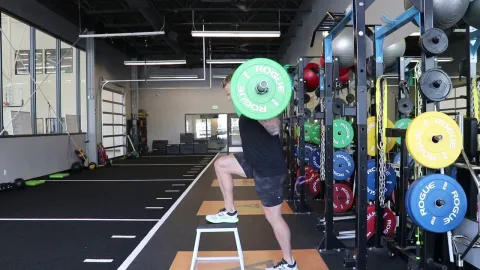 - Coloca la barra en un rack justo por debajo de la altura de los hombros y carga el peso deseado.